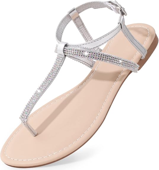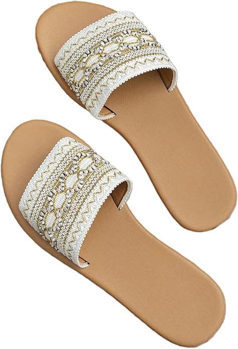 Women's Dressy Sandals Flat Glitter Comfortable Slides Rhinestone Sandals for Women Ladies Fashion Shoes