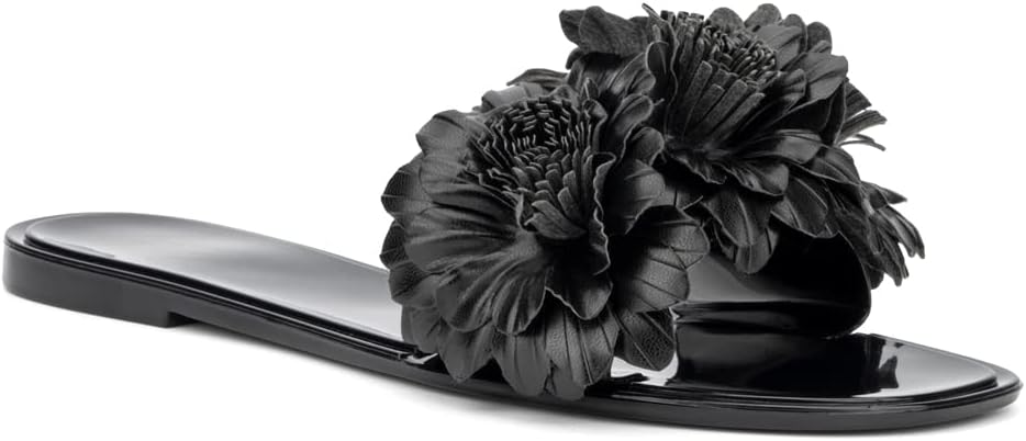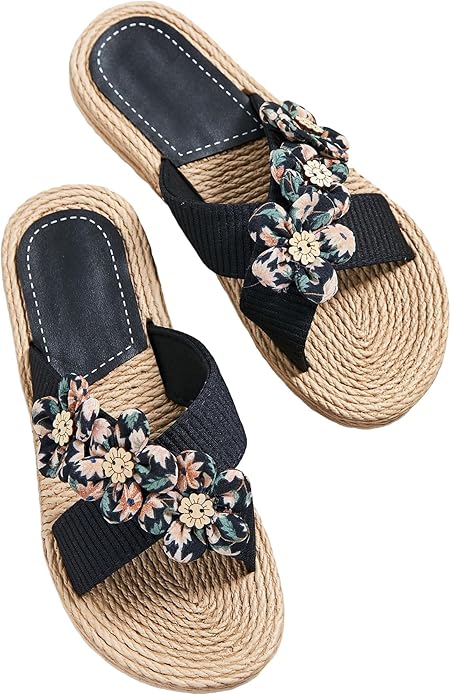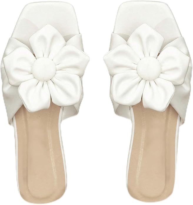 Women's Flower Flat Sandals Cute Floral Sandals Square Toe Comfortable Slide Sandals
