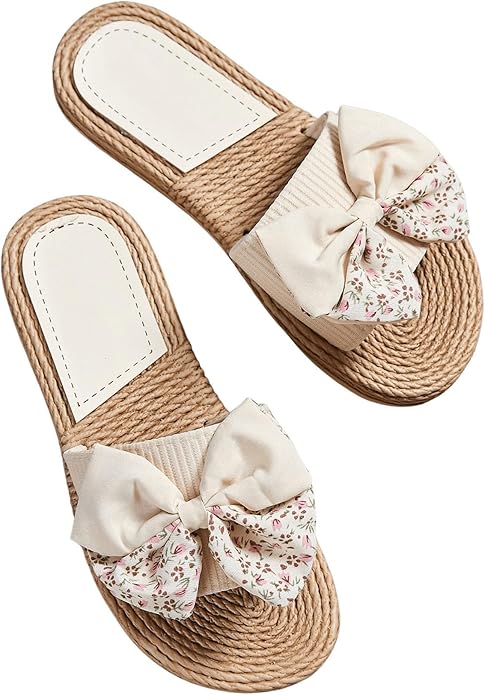 Women's Bow Open Toe Flat Summer Slide Sandals Beach Flats