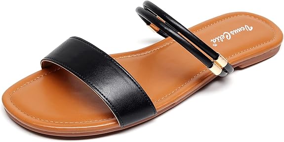 Slides Sandals Adjustable Double Buckle Strap EVA Sandals Flat, All Season Comfortable Light Weight Slides, Indoor and Outdoor