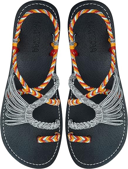 Woven Women's Flat Sandals - Strappy Braided Sandals, Beach Sandals for Women Dressy Summer, Rope Bohemian Sandals, Spring