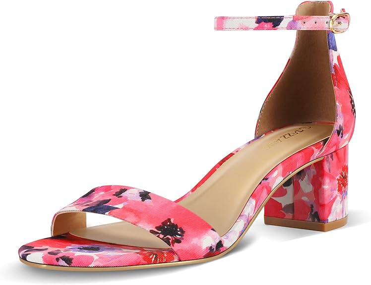 Women's Low Block Chunky Heels Sandals Comfortable Open Toe Ankle Strap Party Dress Pump Shoes Strappy Buckle Heeled Sandal with