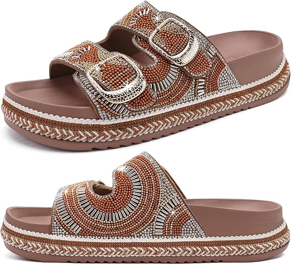 Womens Glitter Sandals with Arch Support Comfortable Orthopedic Cushion Recovery Slides Summer Fashion Sparkly Rhinestones