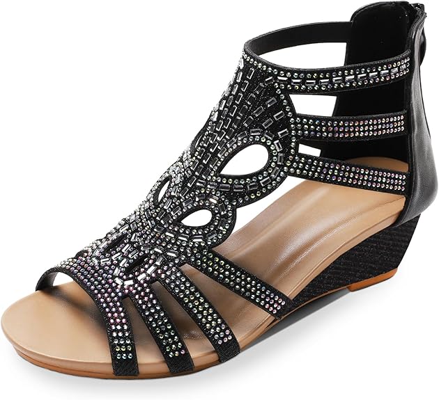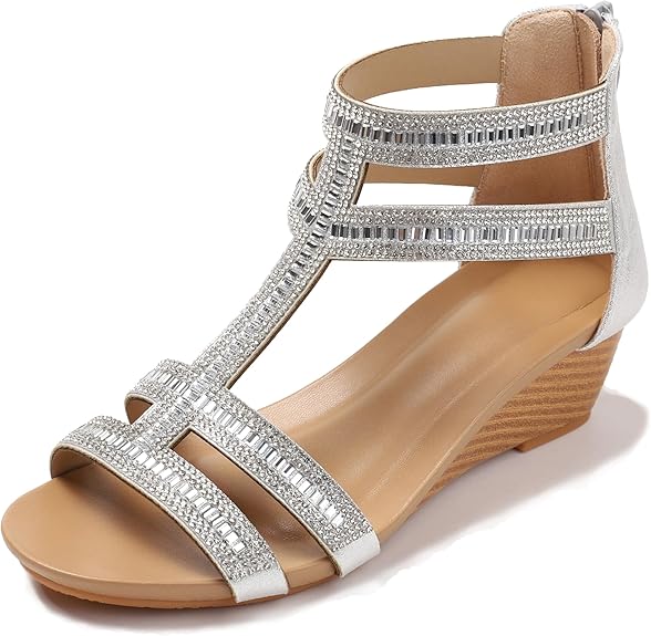 Wedge Sandals for Women Ankle Strap Rhinestone Sandal Dressy Summer Heel Beach Casual Shoes
