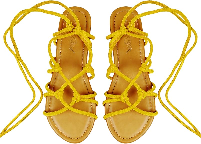 Women's Open Toe Lace Up Gladiator Flat Sandals,Slip on Roman Sandals