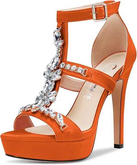 Women Stiletto High Heel Platform Peep Open Toe Sandals Roman Diamond Crystal Wedding Party Sexy 5.1 Inches Heels