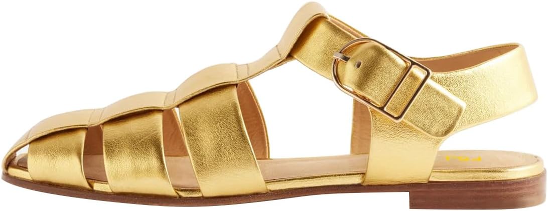 Women Vintage Closed Toe Flat Sandals Caged Comfort Adjustable Buckle Hollow Roman Fisherman Sandals Woven Casual Daily