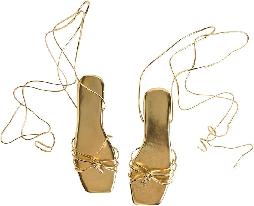 Women's Lace Up Flat Sandals Gladiator Thong Sandals Ankle Strap Square Toe Summer Shoes