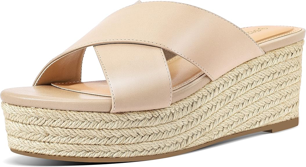Women's Misty Criss Cross Platform Wedge Sandals Open Toe Espadrille Heels Sandals for Casual Summer Slide Shoes