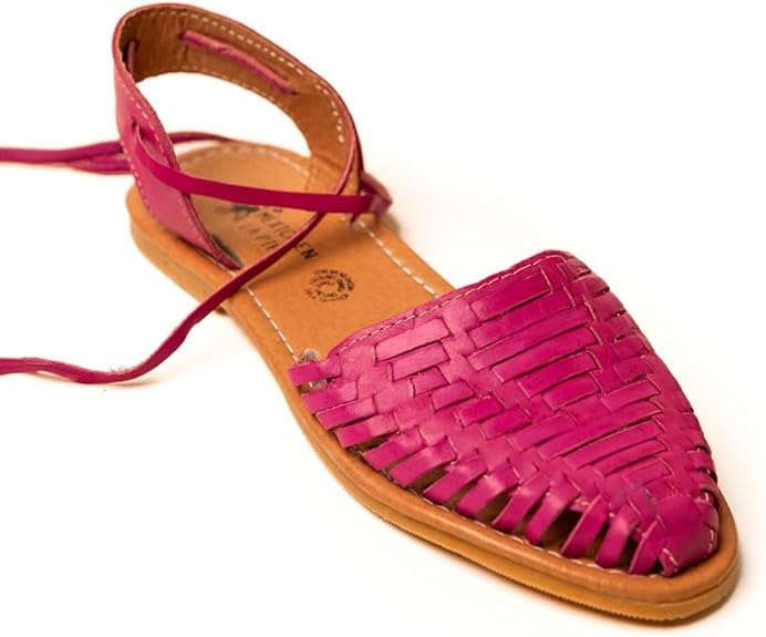 Handcrafted Fuchsia Leather Flat Huarache Sandals for Women - Closed Toe, Lace Up Roman Style, Water-Resistant, Lightweight,